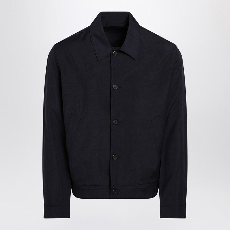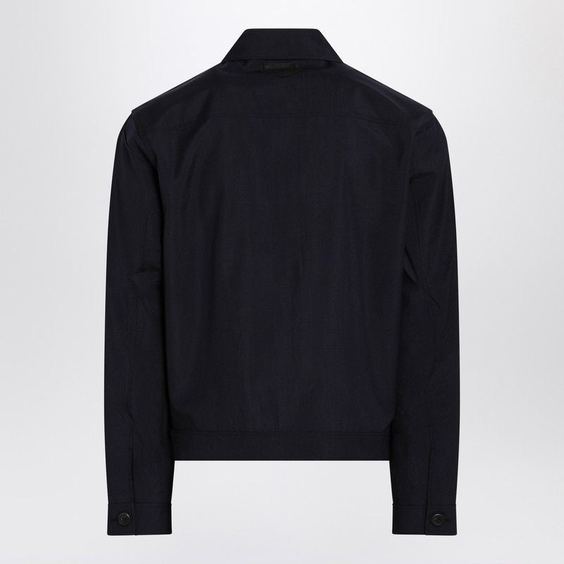 Elevate your outerwear collection with this sophisticated blue wool and mohair jacket from Prada. Crafted from premium virgin wool and mohair blend, this tailored piece features a classic shirt-style collar and front button closure for versatile styling.