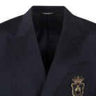 This sophisticated blue wool blend blazer from Dolce & Gabbana exemplifies timeless Italian craftsmanship and elegance. Featuring a classic double-breasted design with gleaming gold buttons and an embroidered crest detail, this blazer adds instant refinement to any wardrobe.