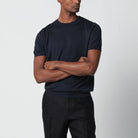 Elevate your warm-weather wardrobe with this sophisticated blue wool-blend knit from Lardini. Crafted from a premium wool blend, this crew-neck sweater features short sleeves and refined ribbed trims for a polished finish. The versatile design effortlessly transitions from casual weekend outings to smart-casual office settings. Style it with tailored trousers for a refined look, or pair it with denim for a more relaxed aesthetic. This Italian-crafted piece embodies Lardini's commitment to quality and timeless elegance, making it an essential addition to any discerning gentleman's collection.