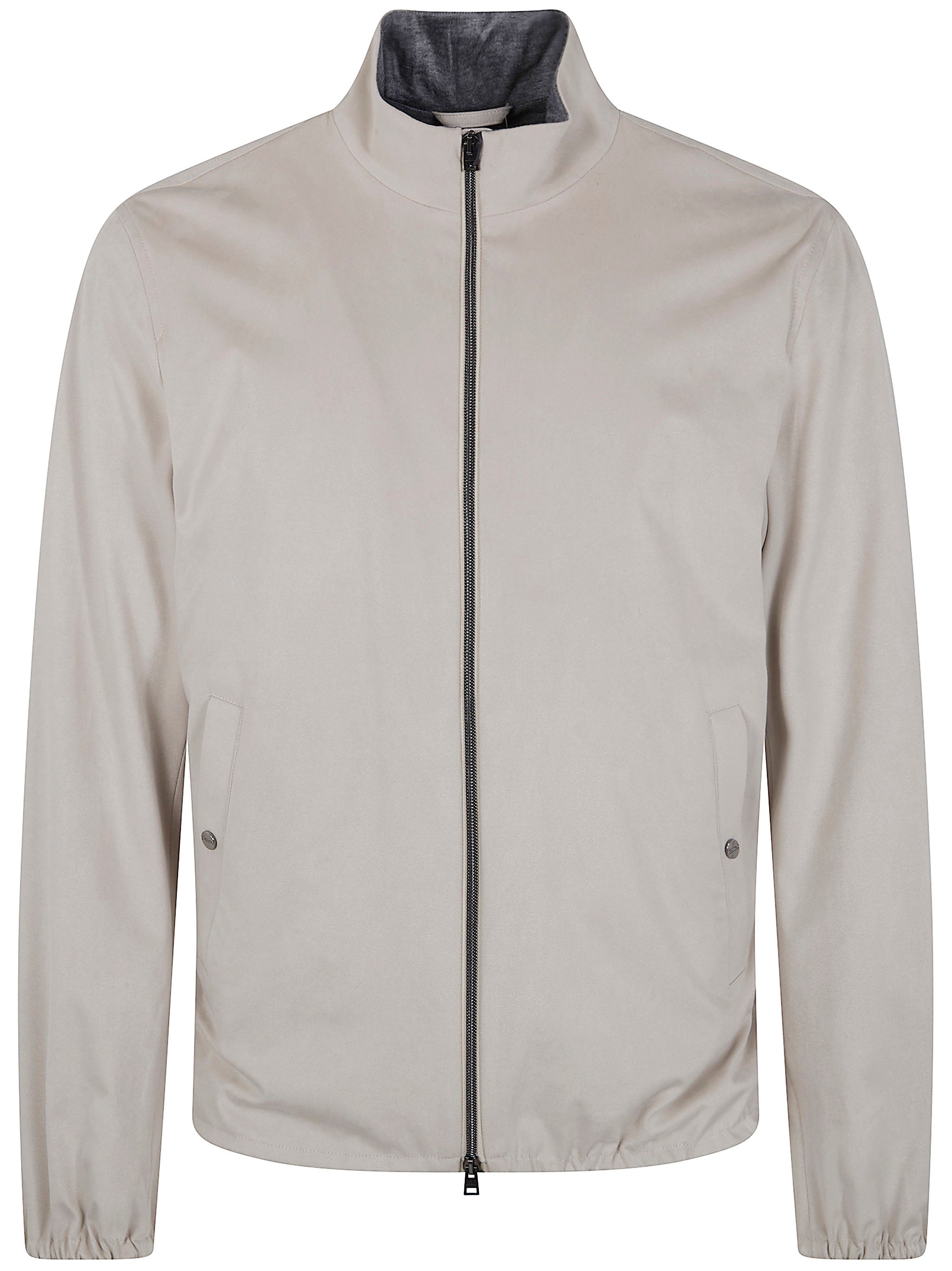 This versatile piece features a sleek stand collar, full-zip front closure, and elastic cuffs that create a refined silhouette perfect for the modern gentleman.
