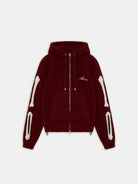 Elevate your casual wardrobe with the AMIRI Bones Hoodie, a statement piece that combines edgy design with luxurious comfort. This striking burgundy hoodie features distinctive bone detail graphics along the sleeves, creating a bold and contemporary aesthetic that's signature to the AMIRI brand.