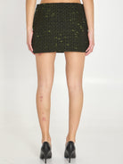 Green and black bouclé wool mini skirt. Features a side zip closure, GG Cross buttons on the front, and a viscose lining. Regular fit.
