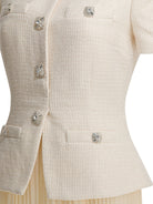 - Bouclé and pleated chiffon construction