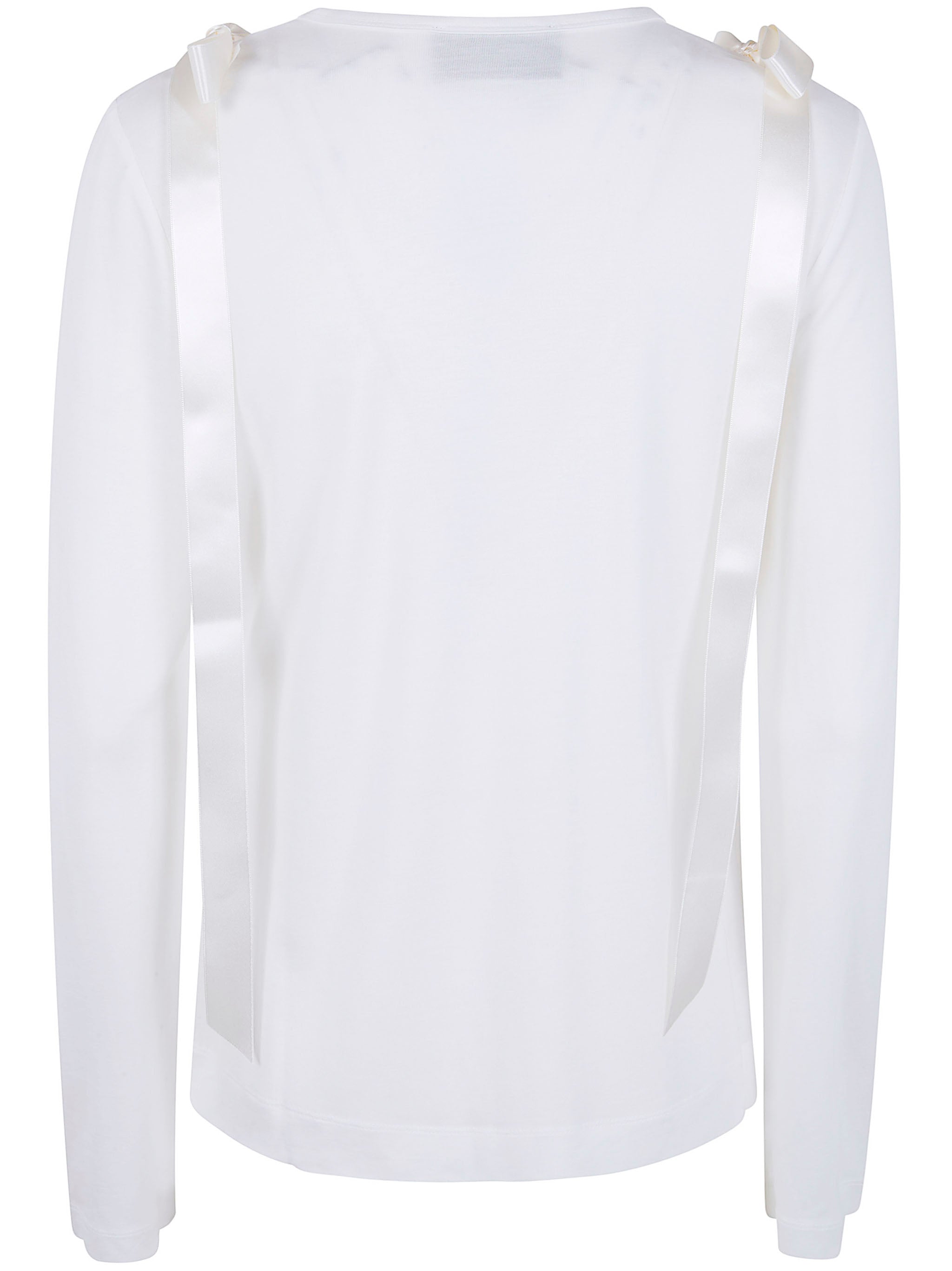 Elevate your everyday wardrobe with this exquisite long sleeve t-shirt from Simone Rocha. Crafted from 100% luxurious lyocell, this piece features the designer's signature romantic aesthetic with charming bow ribbon tail details adorning the shoulders.