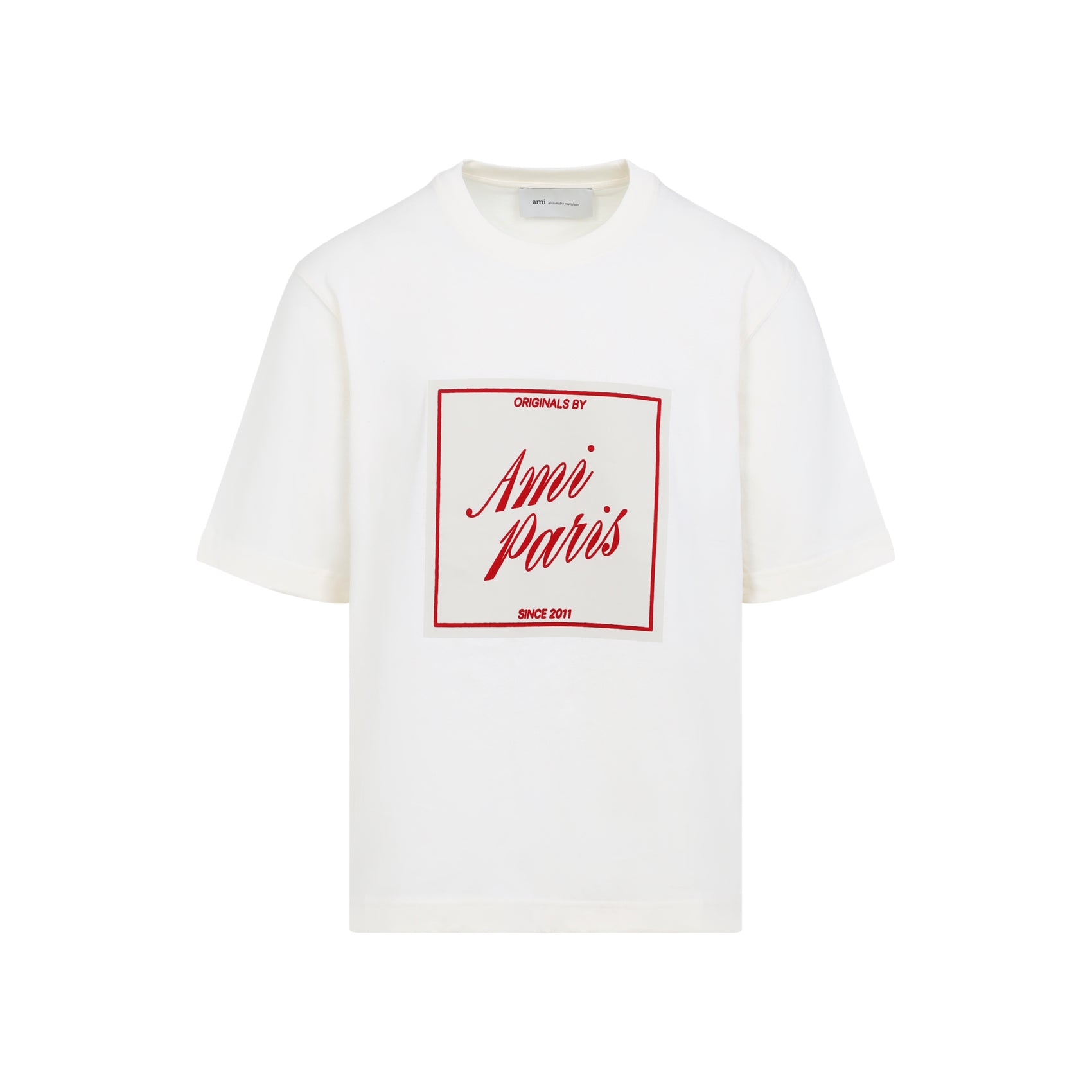 Elevate your casual wardrobe with this boxy fit short sleeve t-shirt from AMI Paris. Crafted from 100% premium cotton, this relaxed silhouette features the iconic AMI Paris logo in a striking red box graphic, adding a touch of Parisian cool to any ensemble.
