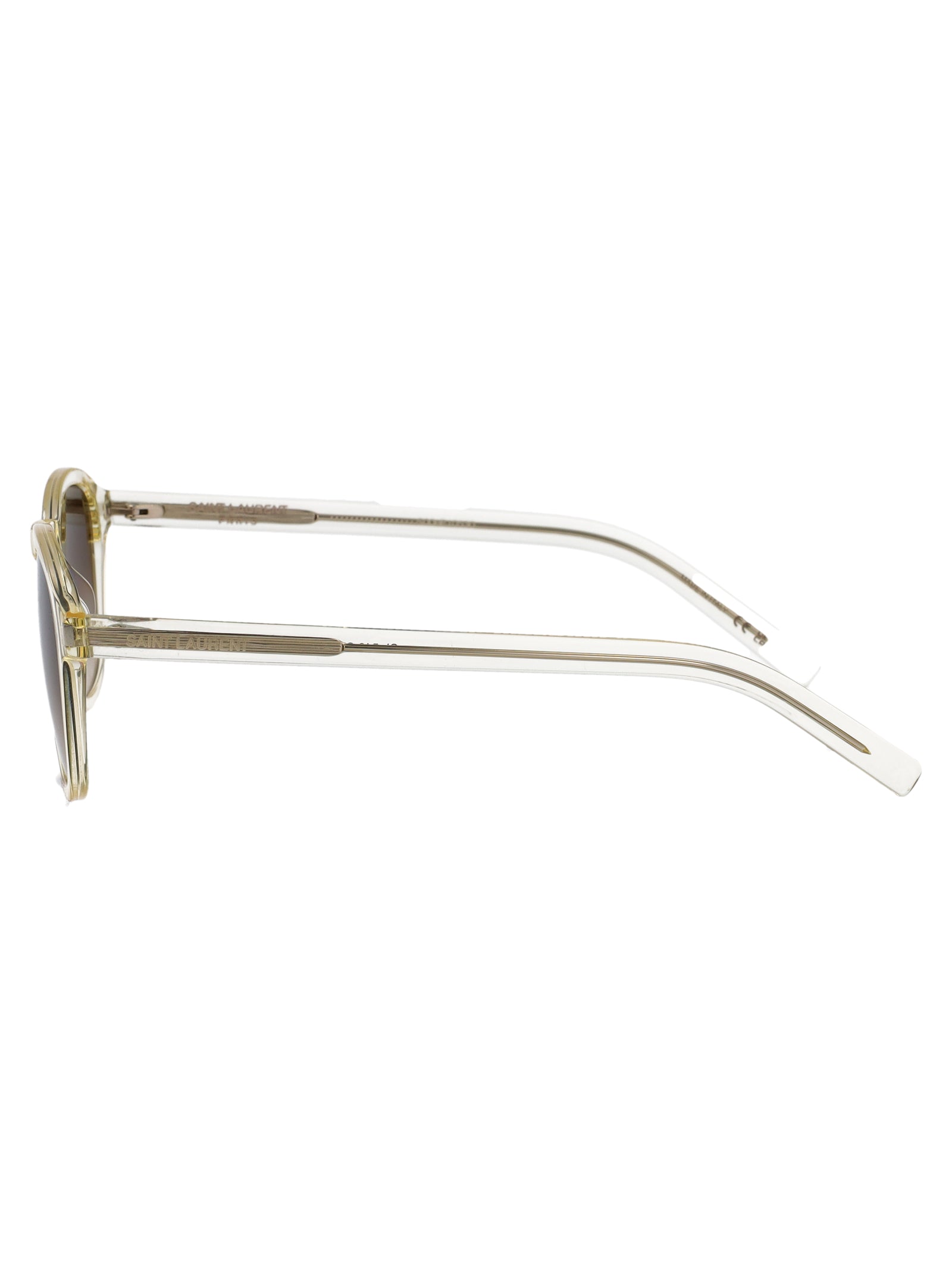 Elevate your everyday style with these stunning Saint Laurent SL 549 SLIM sunglasses in a sophisticated transparent champagne acetate frame with gradient brown lenses. The sleek round silhouette offers a timeless appeal that effortlessly complements any look, from casual weekend wear to vacation ensembles. Crafted with Saint Laurent's signature attention to detail, these sunglasses feature lightweight acetate construction for all-day comfort and style. The gradient brown lenses provide excellent UV protection while adding a touch of luxury to your accessories collection. Perfect for the fashion-forward individual who appreciates refined design and impeccable craftsmanship from one of the world's most iconic luxury houses.