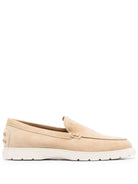 Elevate your everyday style with these sophisticated Tod's brown calf leather loafers. Crafted from premium leather in a versatile beige tone, these refined flats feature a clean silhouette and comfortable white sole.