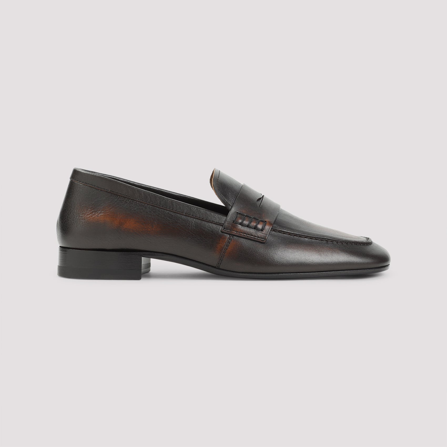 DRIES VAN NOTEN BROWN CALF LEATHER LOAFERS. CRAFTED FROM BROWN CALF LEATHER WITH AN AGED EFFECT, FEATURING A SQUARED TOE, A PENNY STRAP ON THE TOP, A LEATHER LINING AND INSOLE, AND A LEATHER OUTSOLE.