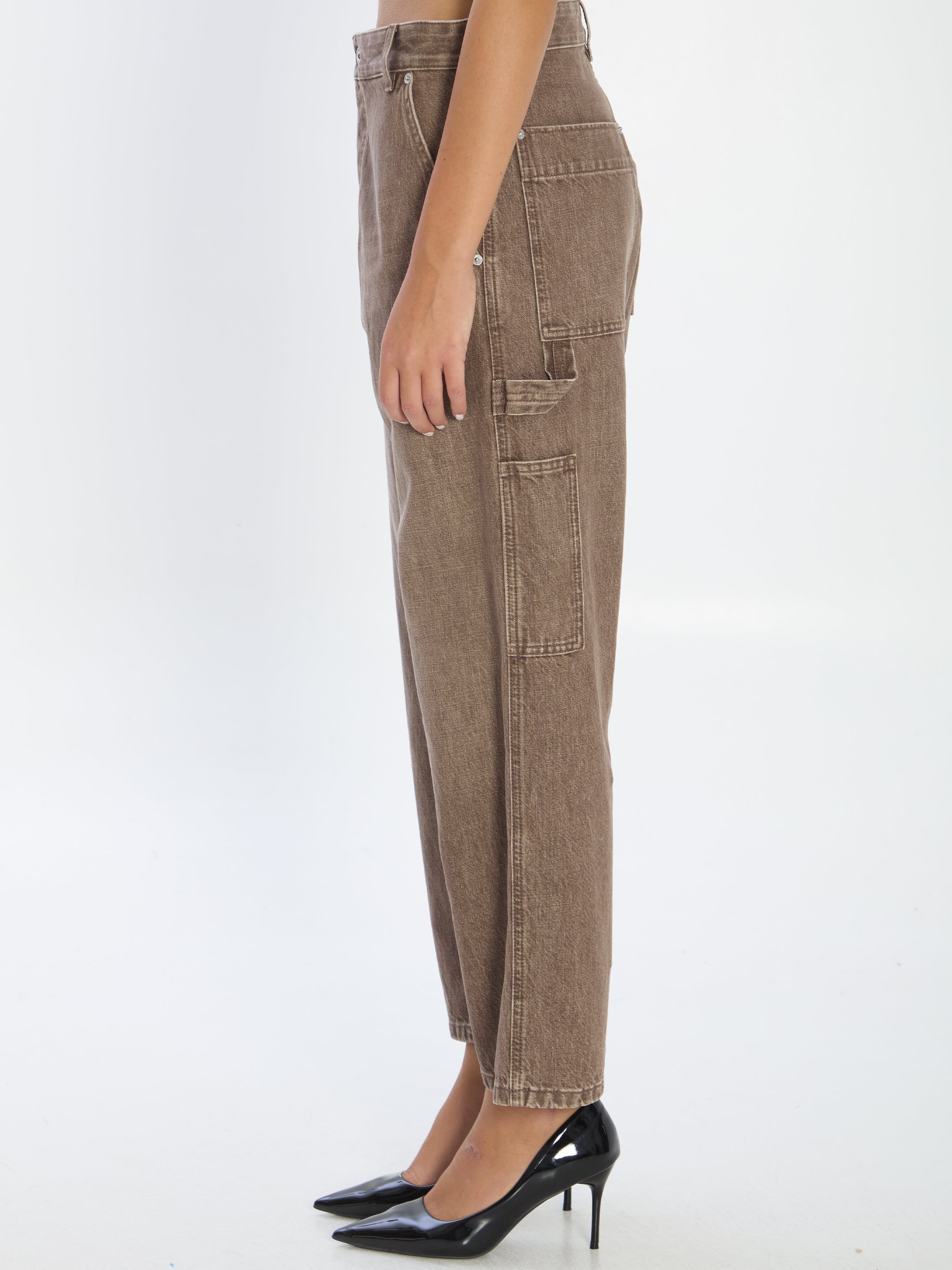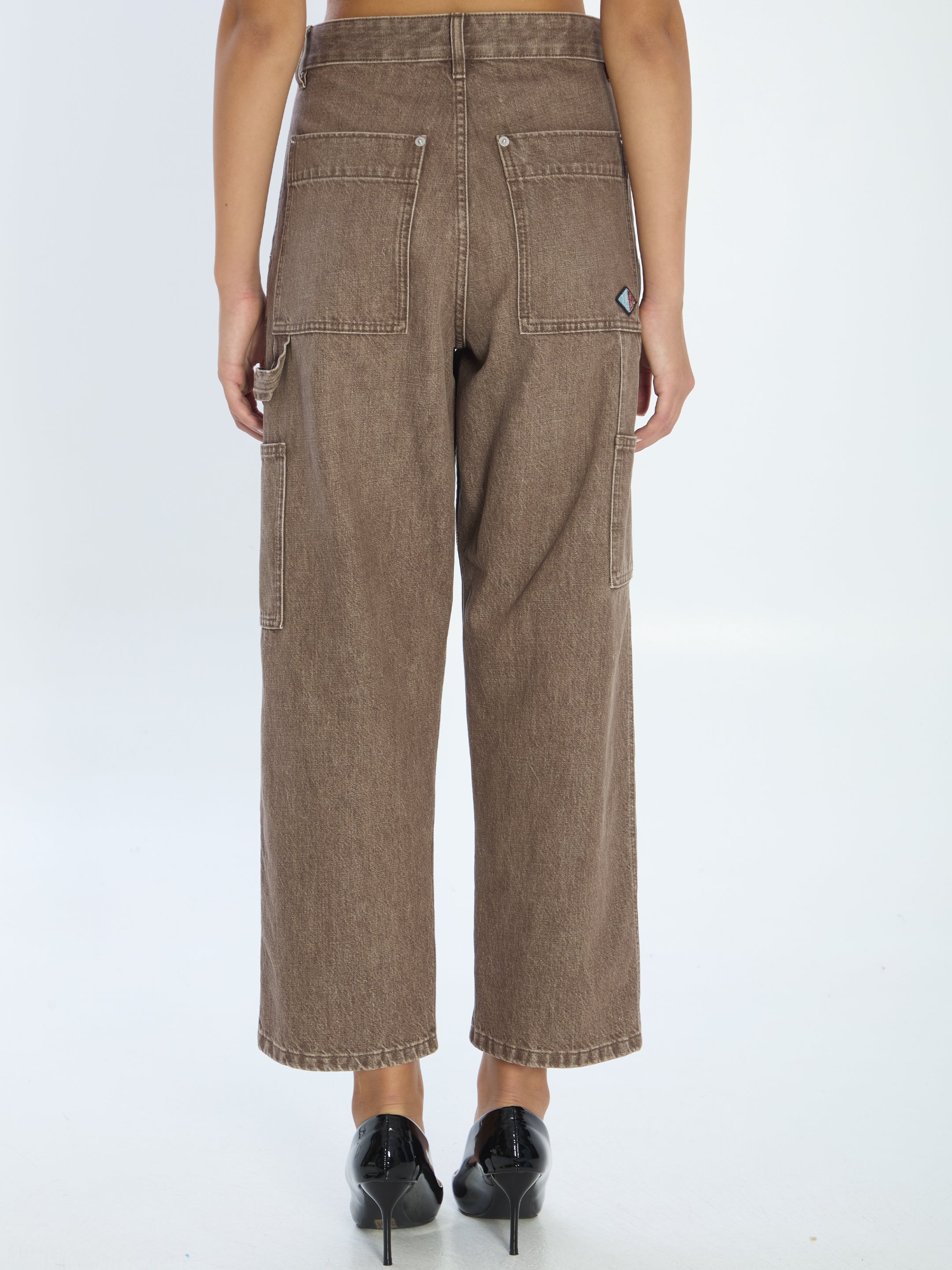 BROWN-WASHED DENIM CARGO JEANS. FEATURES A LOW-RISE WAIST, CARGO-STYLE LEG, BUTTON CLOSURE, BELT LOOPS, EIGHT POCKETS, SIDE LOOP DETAIL, AND LOGO TAG ON THE BACK. REGULAR FIT.