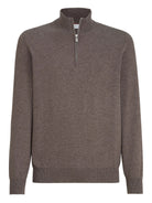 Elevate your everyday wardrobe with this luxurious brown cashmere sweater from Brunello Cucinelli. Crafted from premium cashmere, this quarter-zip pullover offers exceptional softness and warmth while maintaining a refined, sophisticated aesthetic.