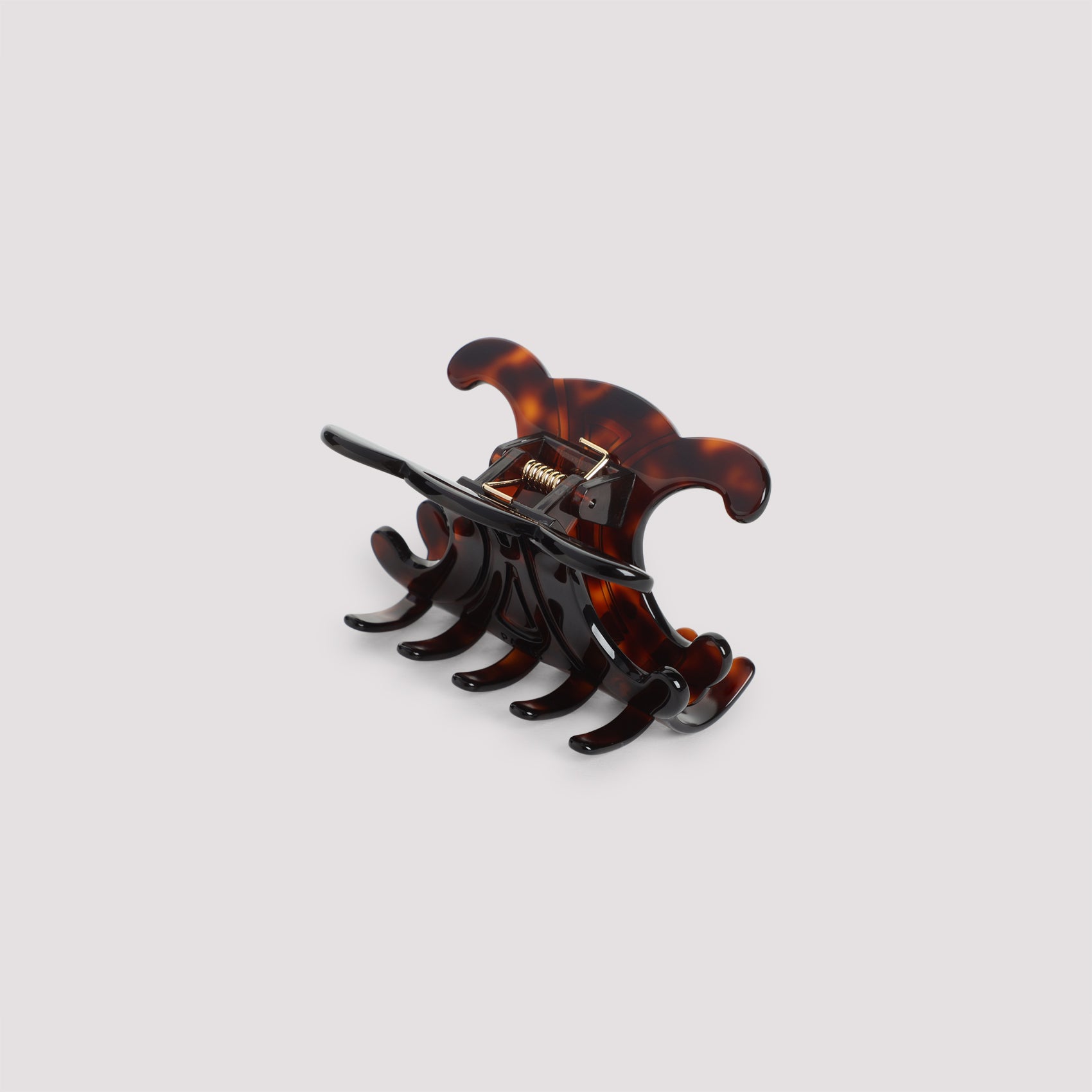 CELINE LARGE BROWN ACETATE HAIR CLAW. CRAFTED FROM DARK HAVANA BROWN ACETATE, TRIOMPHE LOGO-SHAPED.