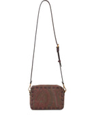 Elevate your everyday style with the Etro Arnica Brown Leather Shoulder Bag, a stunning blend of Italian craftsmanship and bohemian elegance. This luxurious piece features rich brown leather adorned with Etro's signature paisley embossing and decorative studded detailing along the edges.