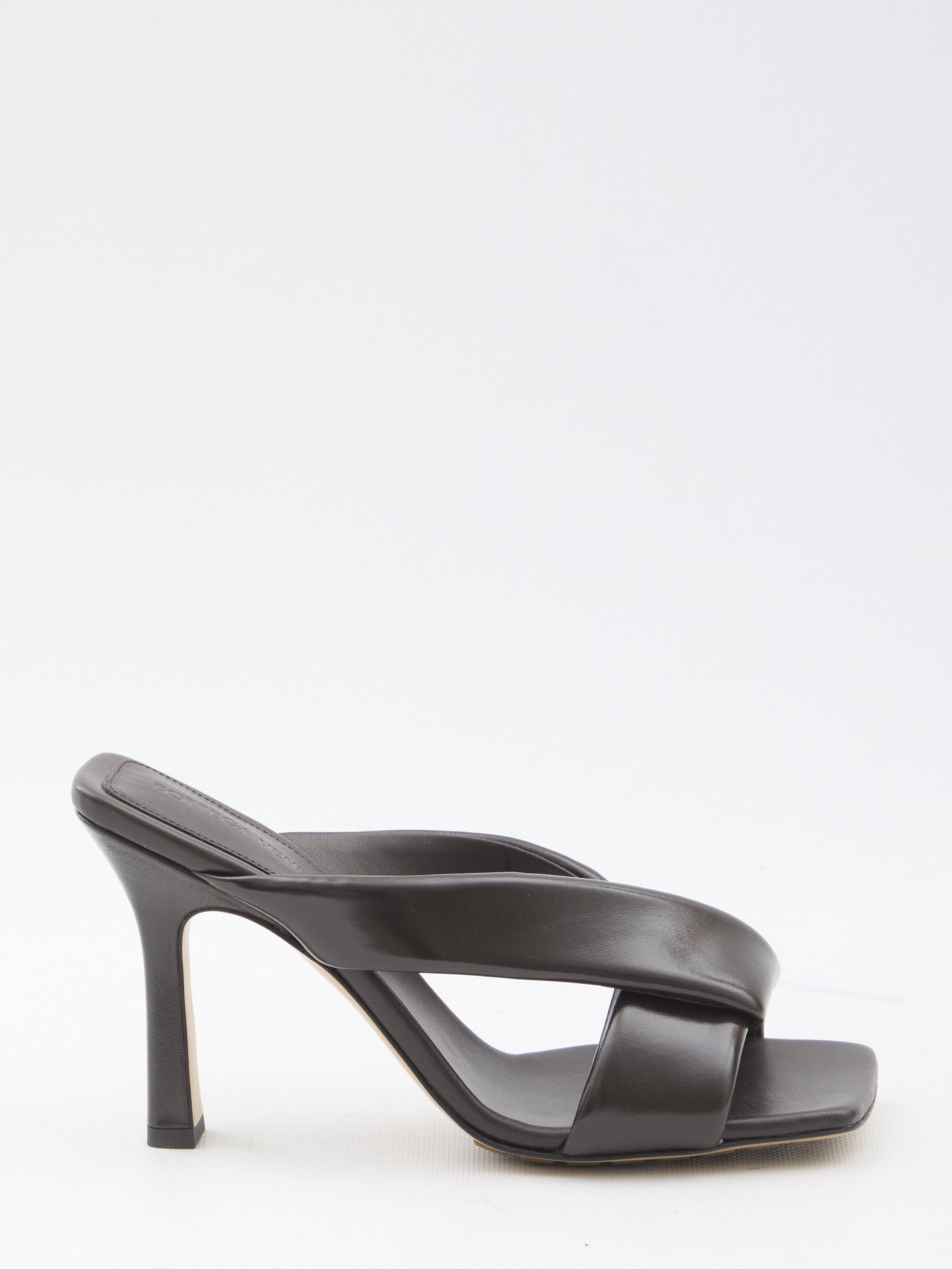 Riva mule sandals in glossy Fondant calfskin leather. They feature a padded overlapping strap upper, embossed logo insole, and a leather sole with injected rubber insert. Dust bag included. Any imperfections in the leather are not to be considered manufacturing defects but rather a characteristic of the material.