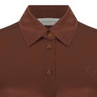 The rich chocolate brown hue and relaxed silhouette make this piece incredibly versatile—style it tucked into tailored trousers for the office, or wear it loose with denim for effortless weekend elegance. The premium silk fabrication drapes beautifully and feels luxurious against the skin.