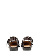 HEEL HEIGHT: 3 CM FLATLY SQUARED BLOCK HEELS SLINGBACK STRAPS LARGE METALLIC BUCKLES WITH EYELET DETAILS ENGRAVED GANNI LOGOS 45% LEATHER, 35% POLYESTER, 20% POLYURETHANE MADE IN PORTUGAL
