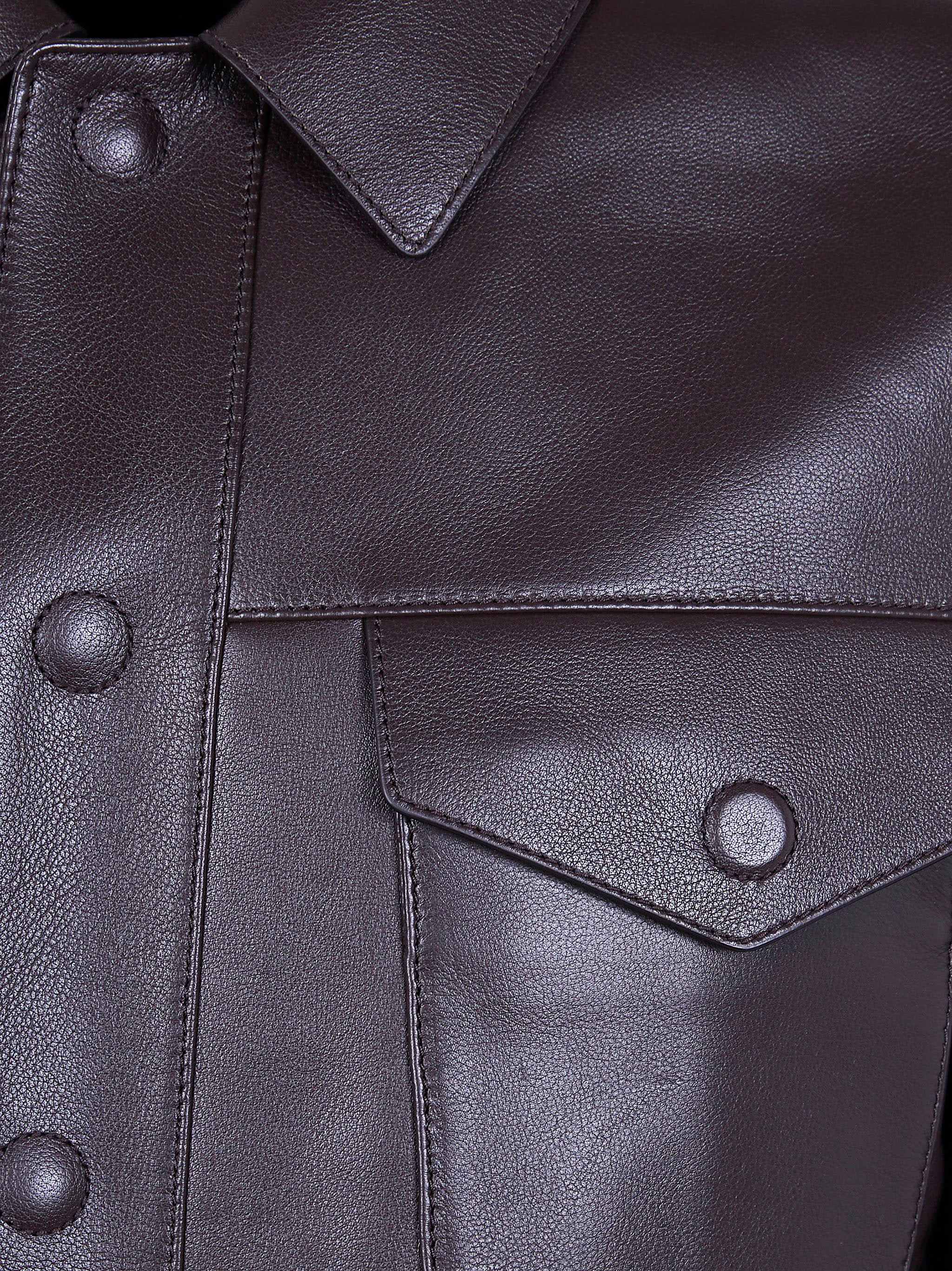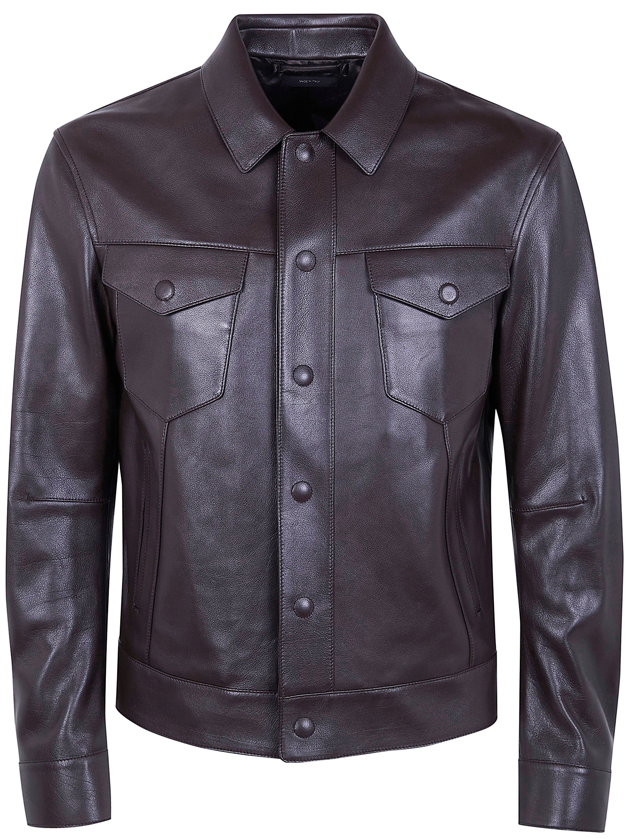 The classic silhouette features distinctive chest pockets with snap closures and a pointed collar, creating a timeless look that transcends seasons. The supple buffalo leather develops a beautiful patina over time, making each piece uniquely yours.