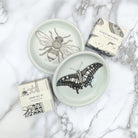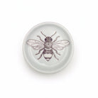 Handcrafted in Cincinnati from durable, high-fire porcelain, the Bumble Bee Everything Plate features an original SKT bumble bee illustration. Screen-printed and detailed with hand-painted glaze and wax, it's dipped in an icy white glaze for a stunning finish. Aptly named, this versatile dish serves many purposes. It makes a great soap dish, especially with our Apiary No. 55 or Honeycomb & Neroli petite guest soaps. Approximately 4" wide and 0.75" tall High-fired porcelain pottery Dishwasher and microwave-safe Exclusively uses lead-free glaze