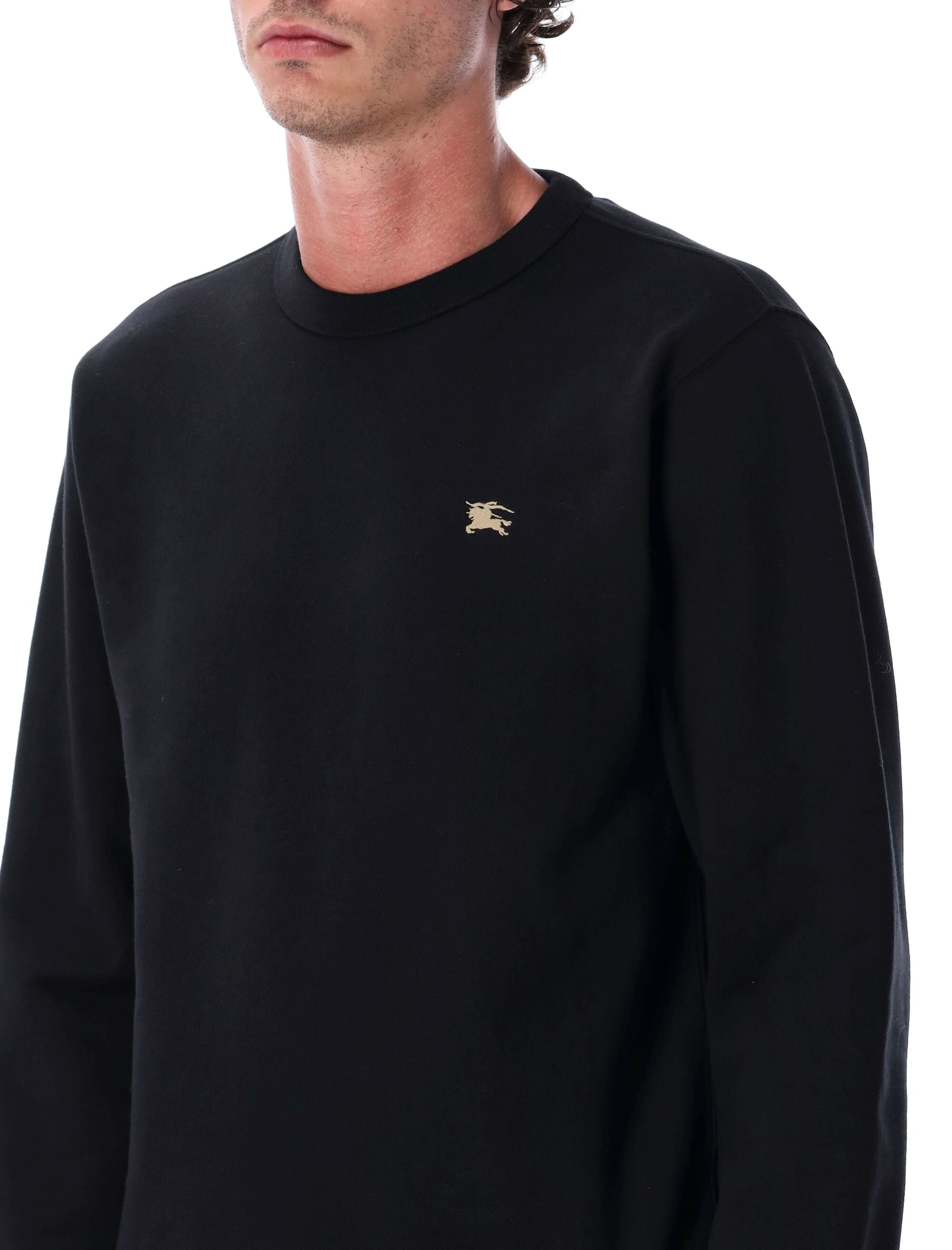 CRAFTED FROM SOFT COTTON TERRY, THIS BURBERRY SWEATSHIRT REINTERPRETS AN ARCHIVAL MOTIF WITH MODERN ELEGANCE. THE FRONT FEATURES A DELICATE EMBROIDERED EQUESTRIAN KNIGHT, WHILE THE BACK REVEALS THE BOLD KNIGHT STAMP PRINT, FIRST INTRODUCED IN THE 1980S. A SLIM-FIT ESSENTIAL, REFINED WITH RIBBED TRIMS, PERFECT FOR EVERYDAY WEAR WITH A TOUCH OF HERITAGE FLAIR.