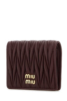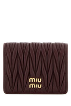 Elevate your everyday essentials with this exquisite burgundy leather wallet from Miu Miu. Crafted in luxurious leather, this compact wallet features the brand's signature matelassé quilting in an eye-catching chevron wave pattern that adds sophisticated texture and dimension.