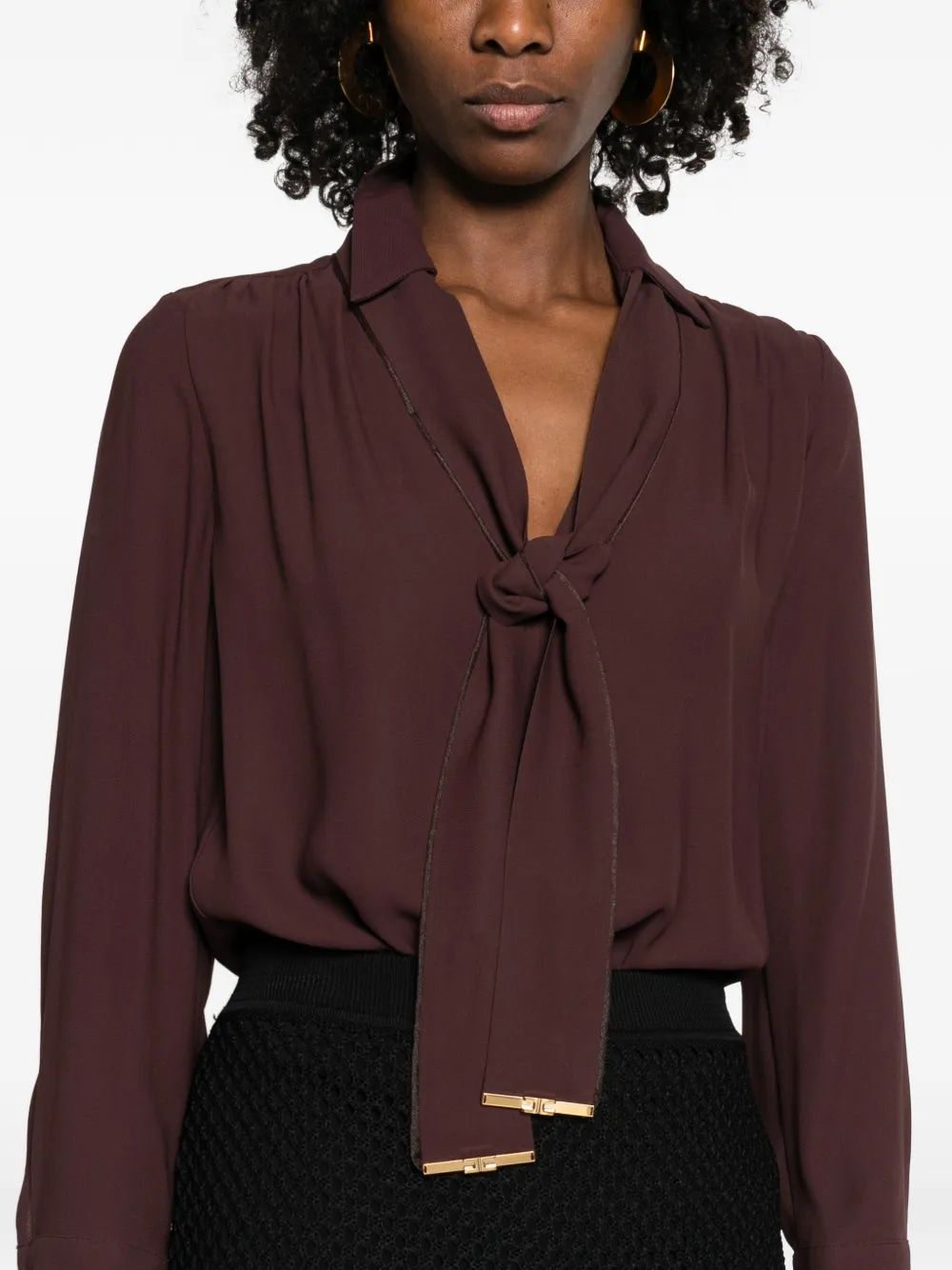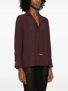 Elevate your everyday wardrobe with this luxurious Cacao Viscose Shirt from Elisabetta Franchi. Crafted from premium viscose fabric, this sophisticated blouse features a flattering V-neckline, classic collar, and long sleeves with elegant button cuffs.