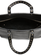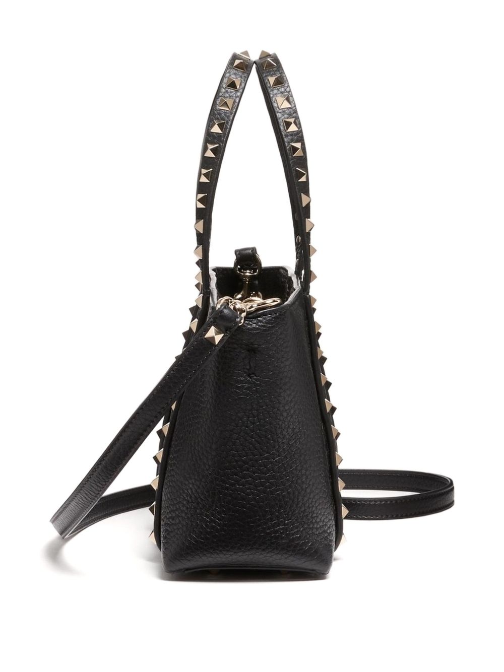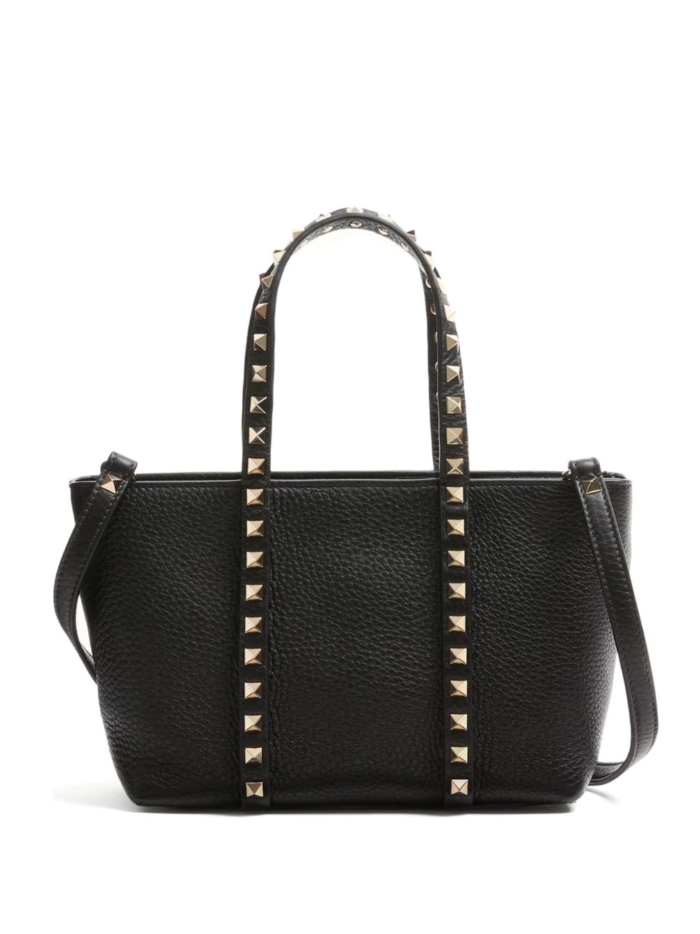 Elevate your everyday style with this luxurious Valentino Garavani calf leather tote. Crafted from supple black pebbled leather, this sophisticated bag features the brand's signature Rockstud embellishment along the handles and sides, adding an edgy yet elegant touch.