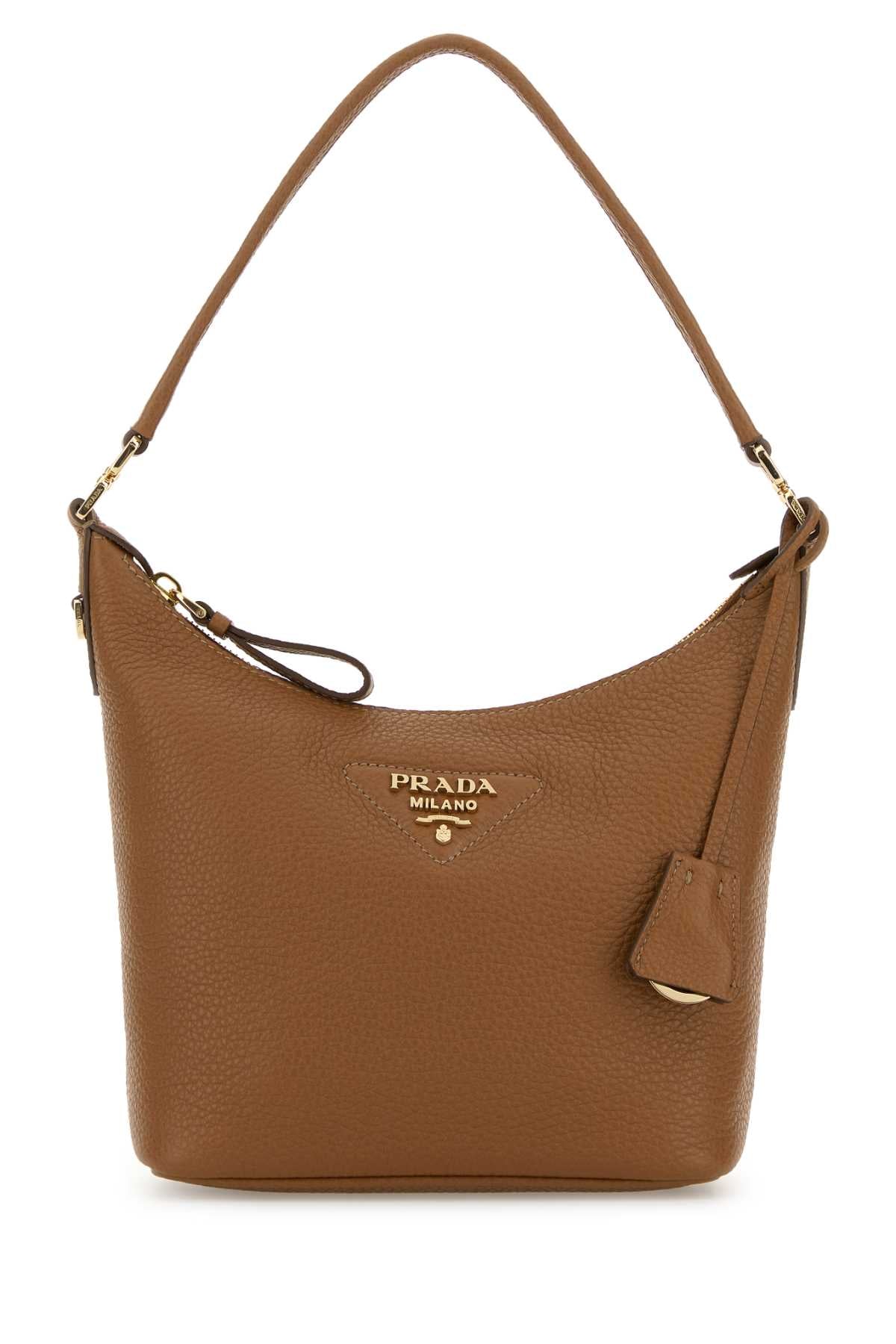 Elevate your everyday style with this exquisite Prada camel leather shoulder bag. Crafted from supple, textured leather in a rich camel tone, this sophisticated sacca design features a sleek silhouette with a comfortable shoulder strap and signature Prada logo detailing. The versatile neutral hue pairs effortlessly with any outfit, making it perfect for the office, weekend errands, or casual outings. This timeless piece combines Italian craftsmanship with practical functionality, offering ample space for your essentials while maintaining an elegant, streamlined profile. A luxurious investment piece that will remain a wardrobe staple for years to come.