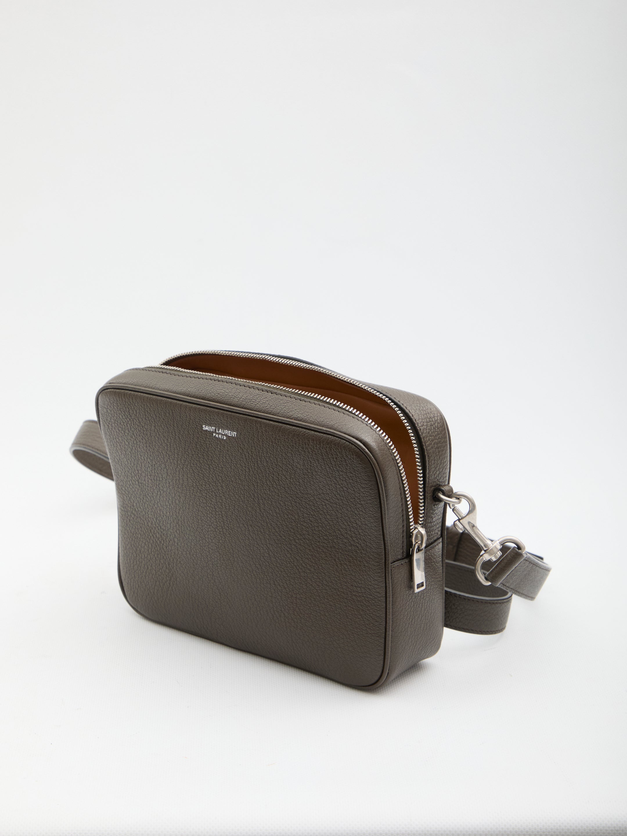 LIGHT MUSK HAMMERED GOATSKIN LEATHER BAG. FEATURING AN ADJUSTABLE AND REMOVABLE SHOULDER STRAP, SAINT LAURENT SIGNATURE ON THE FRONT, ONE FLAT BACK POCKET, ZIP CLOSURE, ONE MAIN COMPARTMENT, ONE FLAT POCKET AND ONE ZIP POCKET INSIDE, LEATHER LINING. DUSTBAG INCLUDED. ANY IMPERFECTIONS IN THE LEATHER ARE NOT TO BE CONSIDERED MANUFACTURING DEFECTS, BUT A CHARACTERISTIC OF THE MATERIAL.