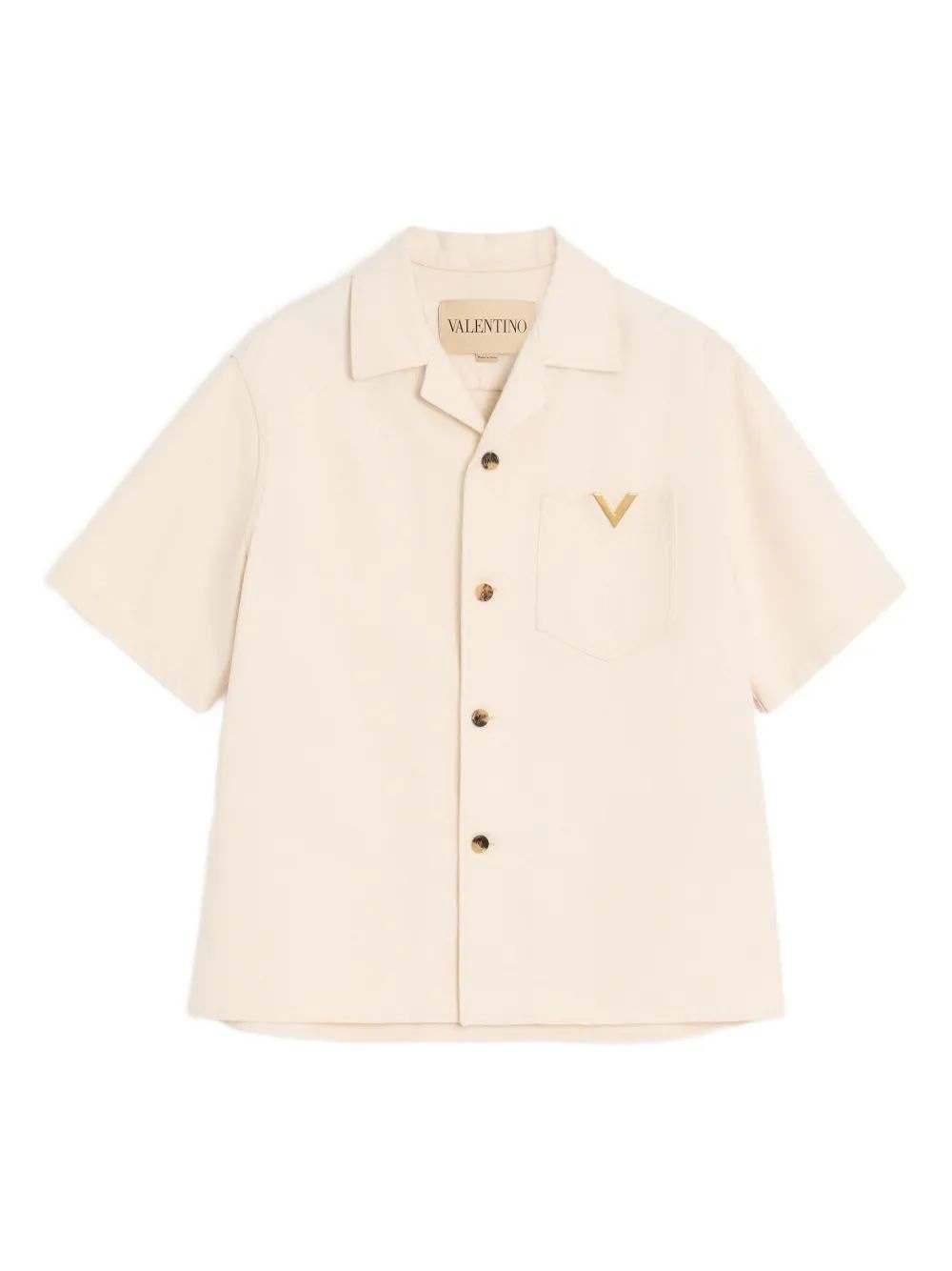Elevate your everyday wardrobe with this exquisite short-sleeve button-down shirt from Valentino. Crafted in a luxurious cream tone, this piece features a relaxed, boxy silhouette that effortlessly blends comfort with sophisticated style.