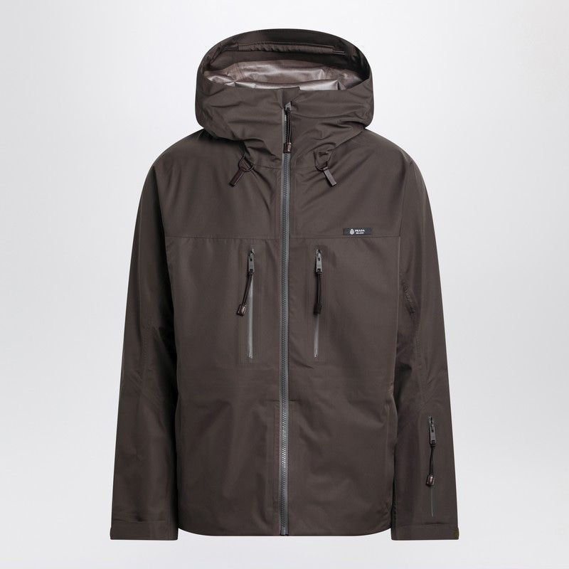 The jacket showcases Prada's commitment to both form and function with its front zip closure, two convenient side pockets, and two chest zip pockets that provide ample storage for your essentials. The tailored logo label on the front adds a subtle touch of luxury branding.