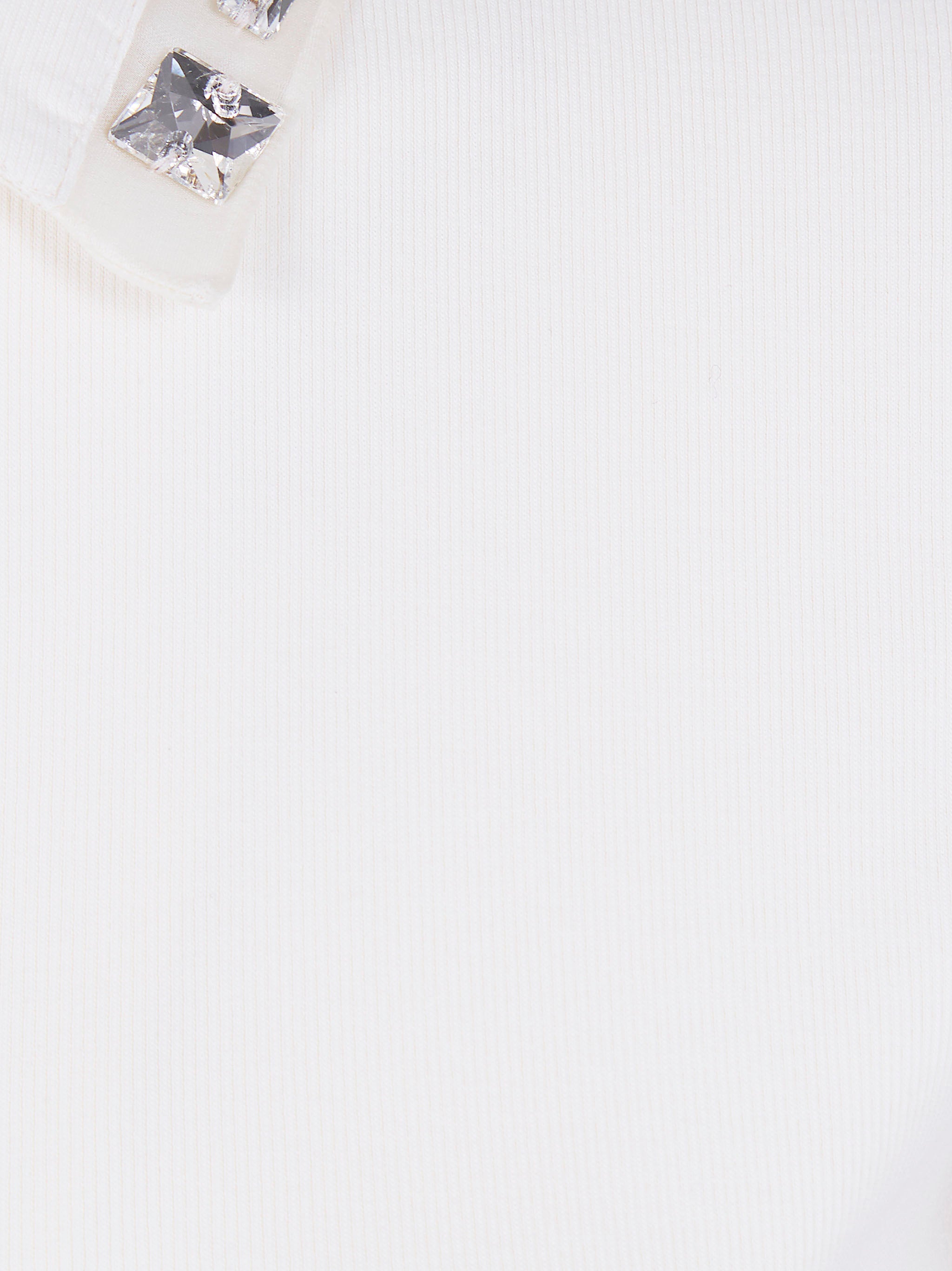 The sophisticated details set this piece apart, including elegant embellishments adorning the collar tips that add a touch of luxury to this timeless staple. The short sleeves and button placket create a polished yet relaxed aesthetic that transitions seamlessly from casual weekends to smart-casual work settings.