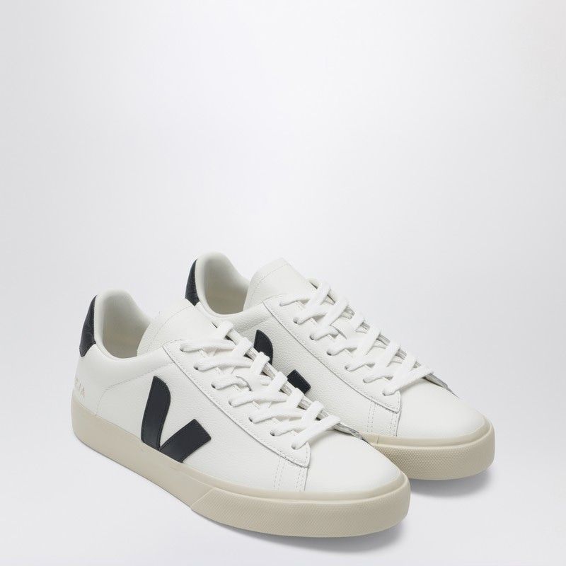 Elevate your everyday style with the Veja Campo Sneakers, a sophisticated take on the classic low-top silhouette. Crafted from premium white organic leather, these sneakers feature the iconic black leather V logo at the sides and a coordinating black heel tab with subtle logo lettering.