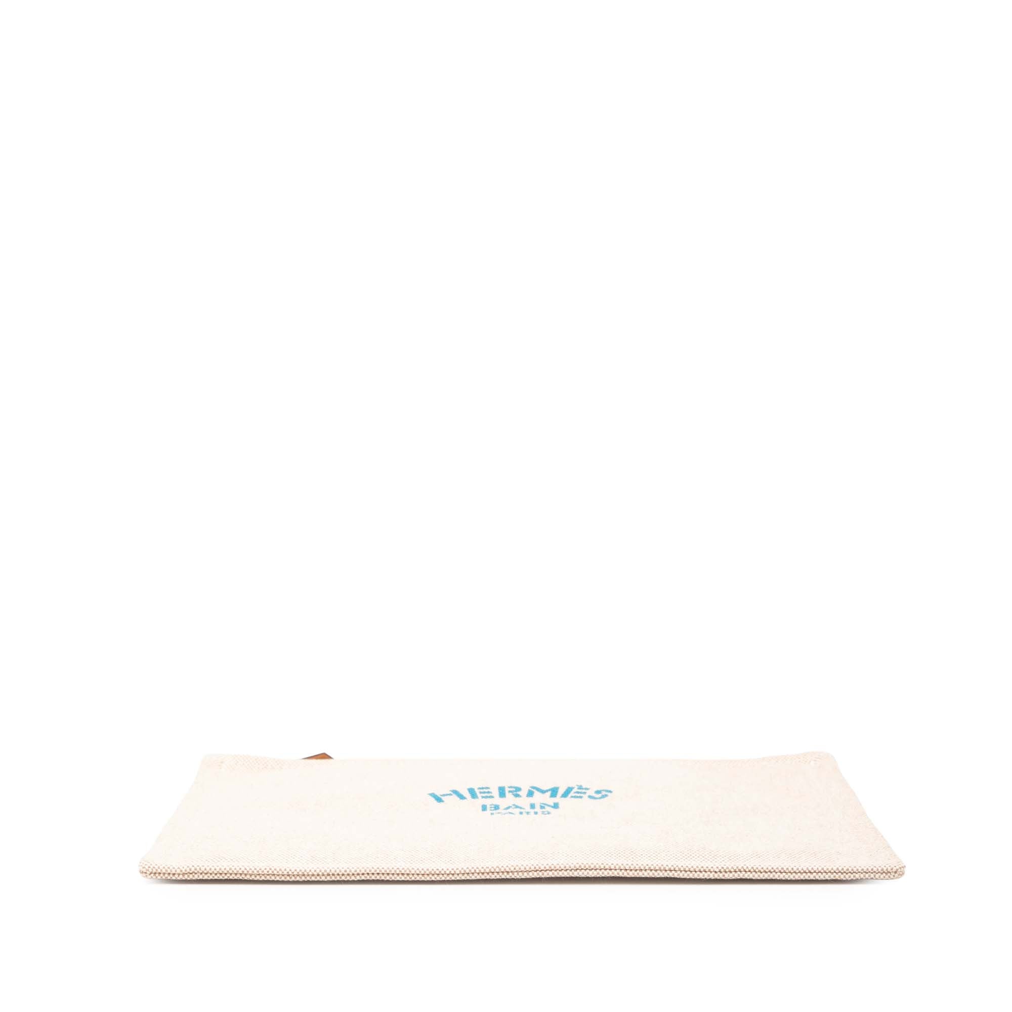 This pouch features a canvas body and a top zip closure.