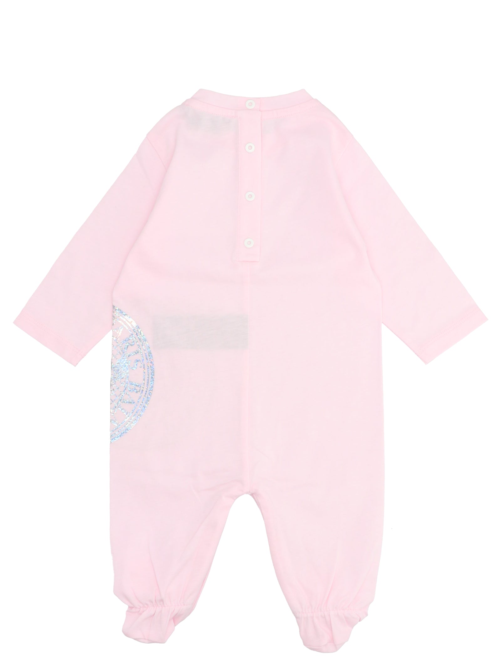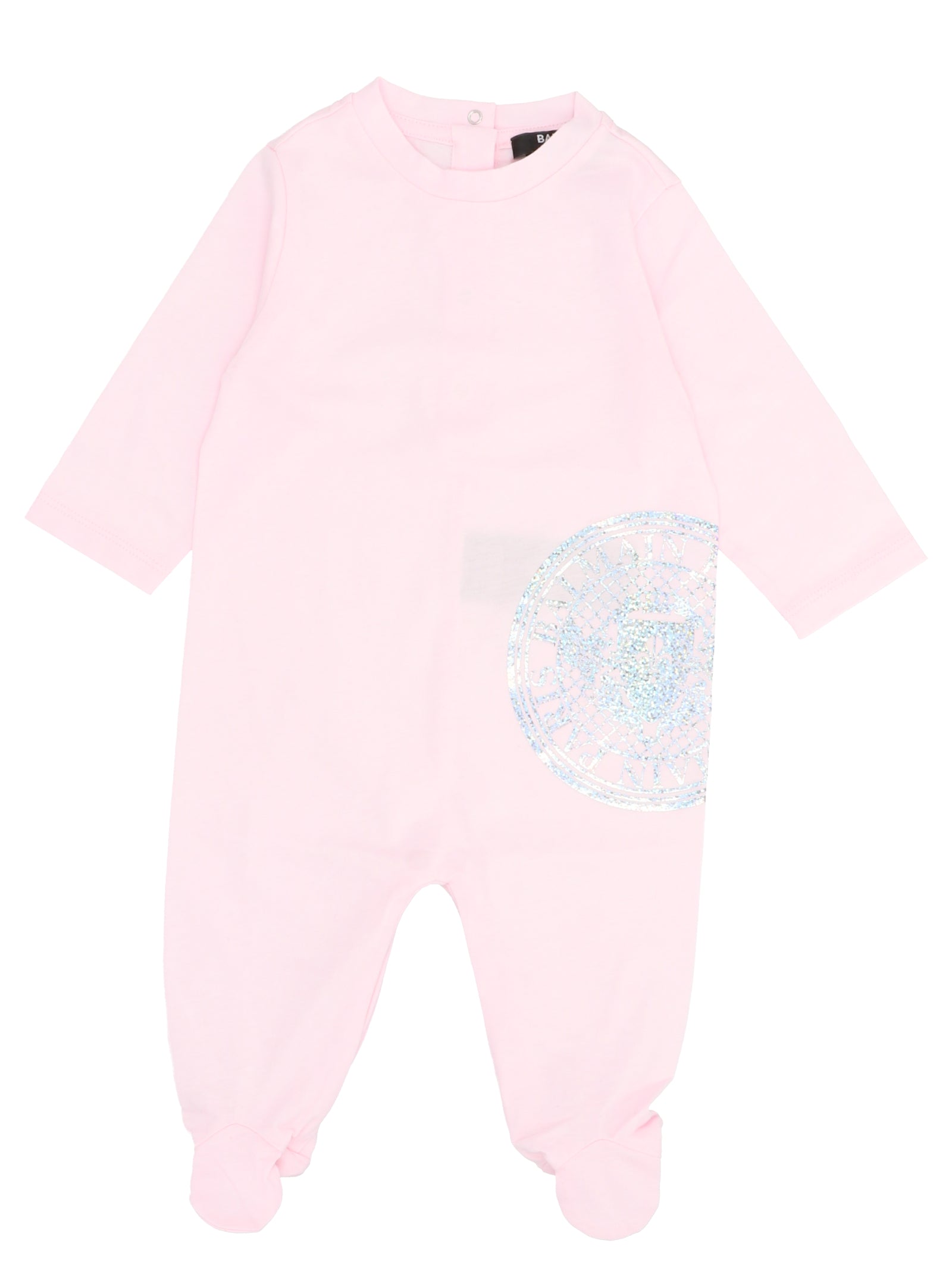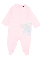 This charming ensemble features a delicate pink colorway with a shimmering logo print detail, perfect for your little one's everyday wear or special occasions. The long-sleeved rompersuit includes convenient snap closures and a footed design for easy dressing and all-day comfort.