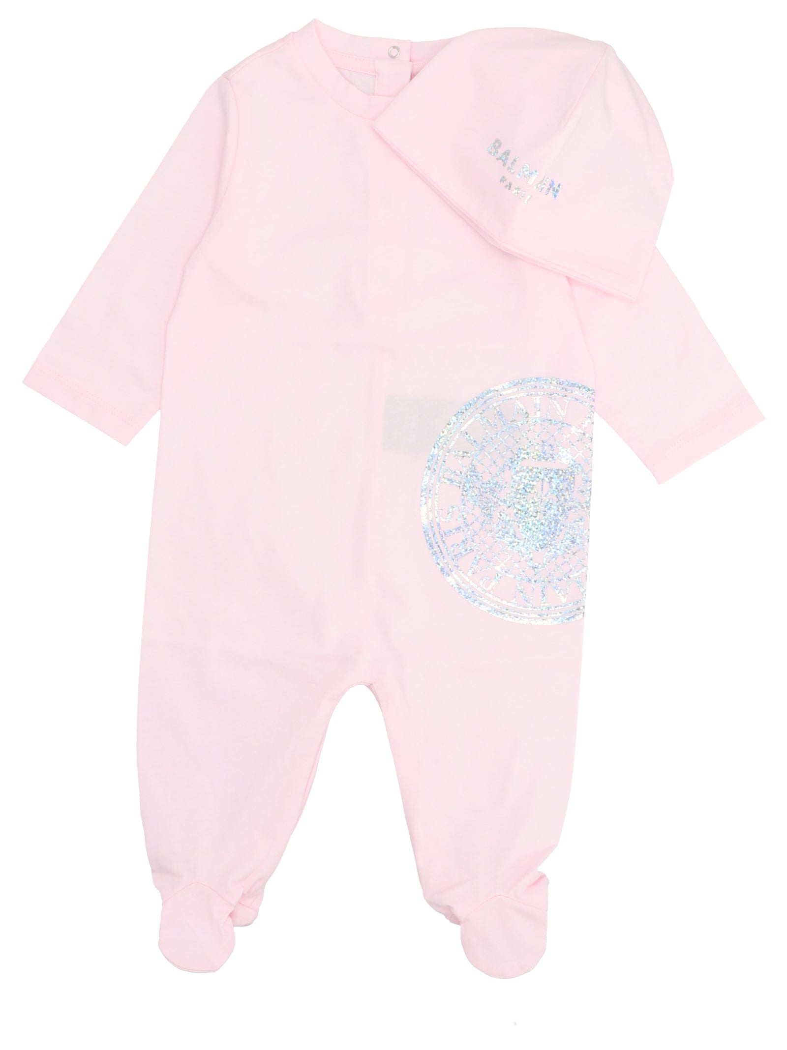 Complete with a matching cap, this luxurious set makes an excellent gift or a sophisticated addition to any baby's wardrobe. The premium cotton fabric ensures breathability and softness against delicate skin, while the iconic BALMAIN KIDS branding adds a touch of designer elegance.