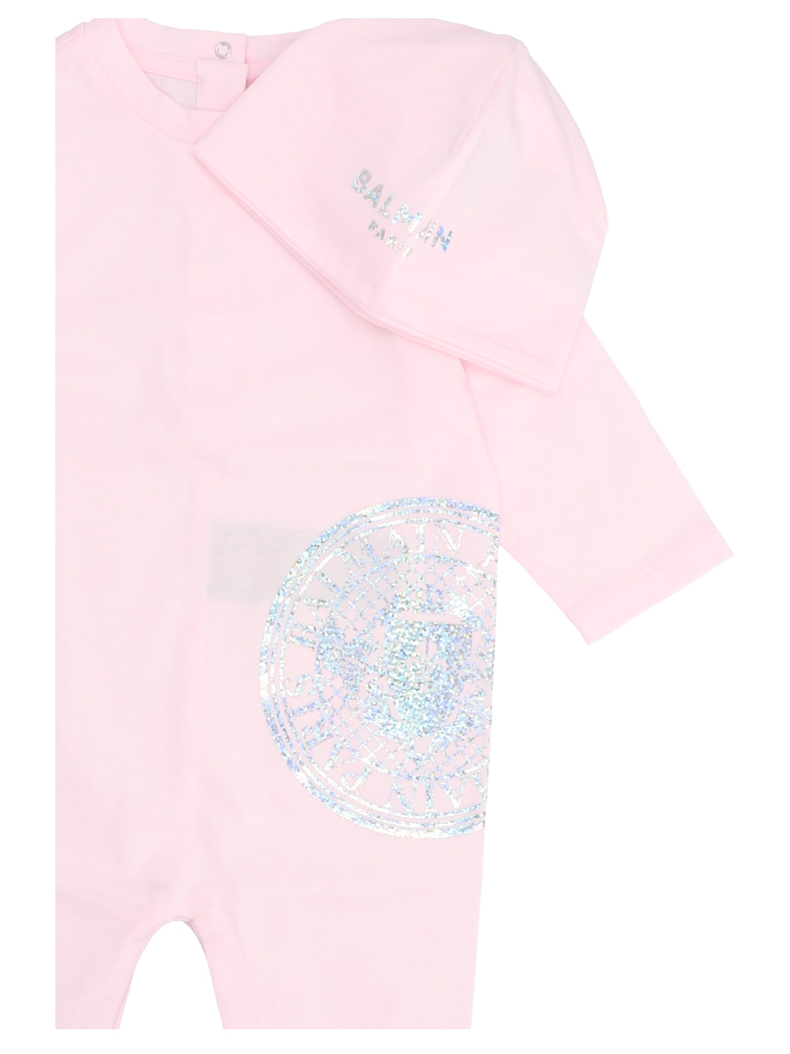 BALMAIN KIDS presents this adorable baby romper and cap set, crafted from soft cotton for ultimate comfort.