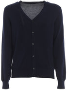 Elevate your everyday wardrobe with this classic cardigan from Fay. Crafted from 100% premium cotton, this navy blue essential features a timeless button-front design with a flattering V-neckline and ribbed trim details.