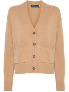 POLO RALPH LAUREN EMBROIDERED LOGO CARDIGAN NEUTRALS WOOL NYLON CASHMERE CARDIGANS KNITS CLOTHING WOMEN