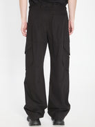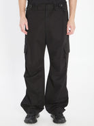 BLACK COTTON TROUSERS. FEATURING A FRONT ZIP AND BUTTON CLOSURE, DRAWSTRING WAIST, FIVE POCKETS, LOGO APPLIQUé ON THE BACK, AND WIDE-LEG CUT. REGULAR FIT.