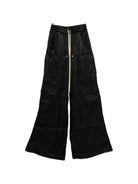 Elevate your everyday wardrobe with these striking Rick Owens cargo trousers in sleek black. Featuring an avant-garde wide-leg silhouette, these pants showcase signature cargo pockets, a comfortable drawstring waist, and an elasticated waistband for the perfect fit.