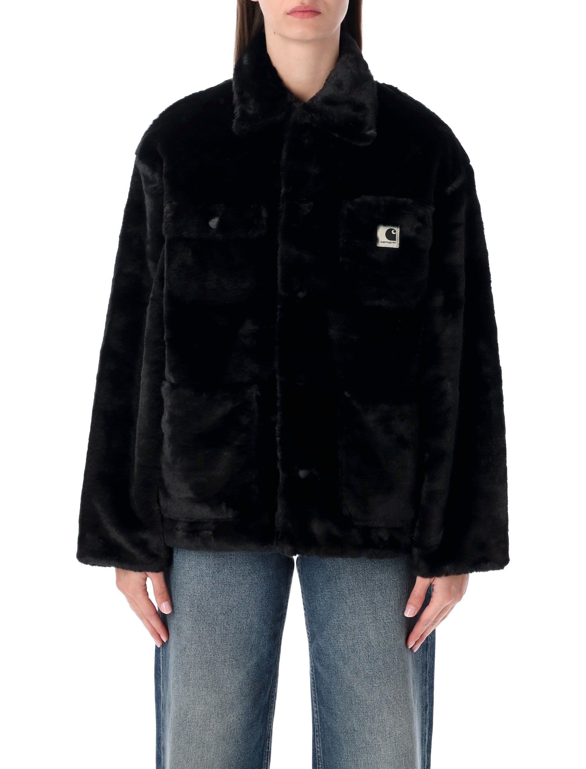 CARHARTT WIP BLACK FAUX FUR W’ OLNEY MICHIGAN COAT
