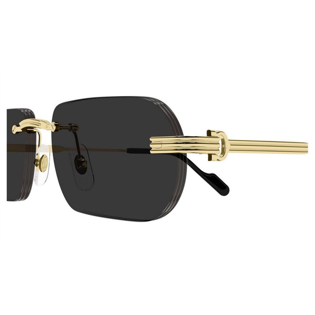 Featuring a sophisticated rimless construction with gleaming gold-tone frames and sleek grey lenses, these sunglasses embody the refined elegance that Cartier is renowned for. The minimalist square silhouette offers a contemporary edge while maintaining classic appeal, making them the perfect accessory for the discerning gentleman.