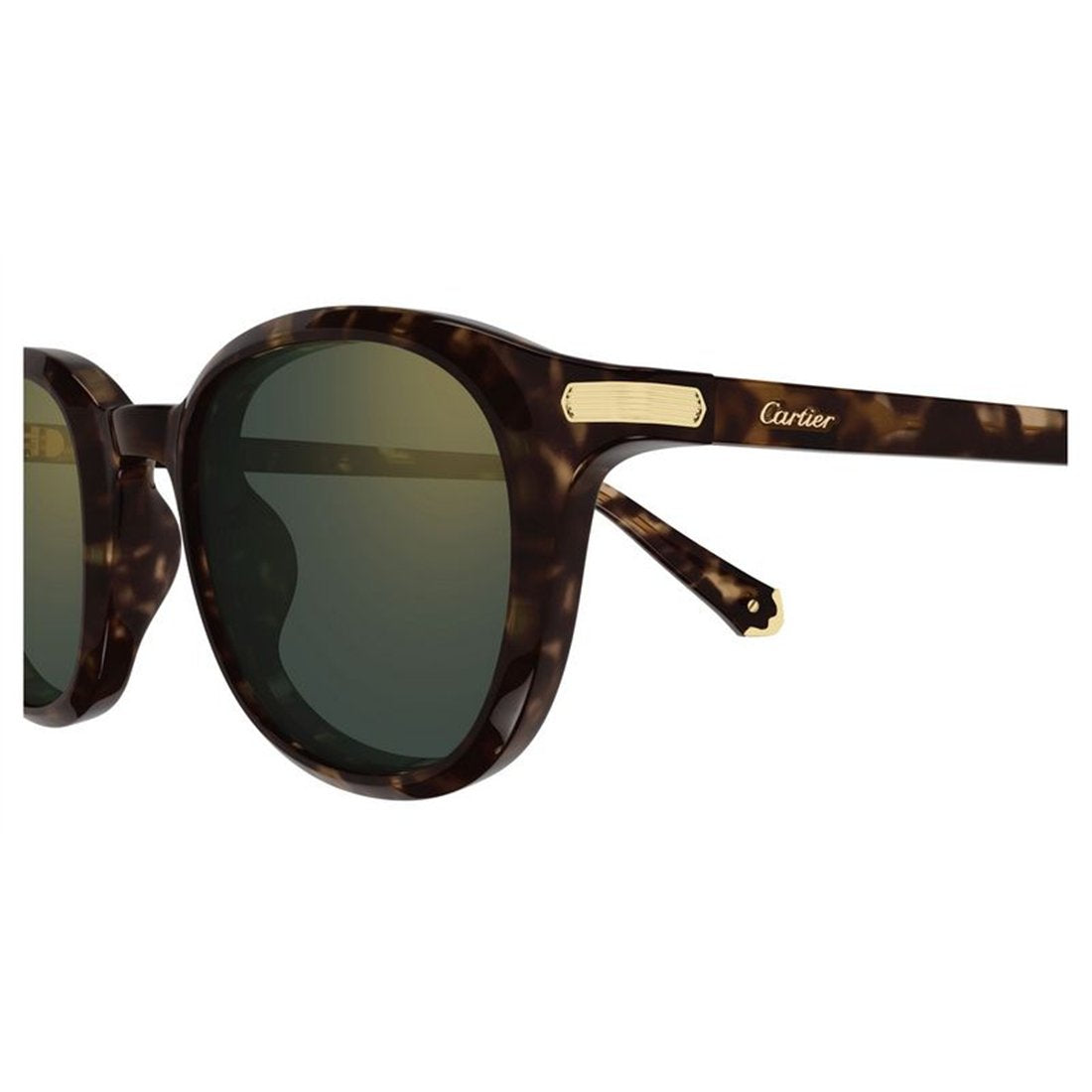 Elevate your eyewear collection with the Cartier CT0584S 002 sunglasses, a timeless accessory that exudes sophistication and luxury. Featuring a classic round frame in rich Havana tortoiseshell with striking green lenses, these sunglasses offer both impeccable style and superior sun protection.