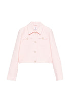Elevate your outerwear collection with this Casablanca Button-Up Cropped Jacket in a soft blush pink hue. This chic jacket features a classic collar, button-front closure, and functional chest pockets for a polished yet relaxed aesthetic.