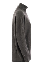 FINE KNITWEAR MEETS CONTEMPORARY LINES IN THE CASHMERE AND SILK TURTLENECK SWEATER. THE CLASSIC TASTE OF THE KNIT IS COMBINED WITH THE NATURAL SOFTNESS OF THE YARN AND THE SILHOUETTE OF COMFORTABLE VOLUMES, WITH SLIGHTLY LOWERED SHOULDERS, WHICH CONTRIBUTES TO COMFORTABLE WEARING. THE MICRO SEQUINS CONTRIBUTE A LUMINOSITY IN TRUE BRUNELLO CUCINELLI STYLE. - HIGH COLLAR - DROPPED SHOULDER - ENGLISH KNIT DESIGNER ID: M73539914 CJ079