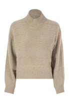 THE PRECIOUSNESS OF THE CASHMERE AND COTTON YARN LENDS A REFINED TOUCH TO THE NEW ENGLISH HALF-RIB KNIT, ELEVATING THE CASUAL STYLE WITH LUMINOUS DETAILS. THE RELAXED SILHOUETTE, CHARACTERISED BY DROPPED SHOULDERS AND WIDE SLEEVES, IS ENRICHED WITH DELICATE SHIMMERING REFLECTIONS THANKS TO TONE-ON-TONE SEQUINS, ENCASED IN THE YARN, FOR A SOPHISTICATED AND FEMININE EFFECT. - HIGH COLLAR - DROPPED SHOULDER - WIDE SLEEVE - HALF SLEEVE DESIGNER ID: MBM738204 C505