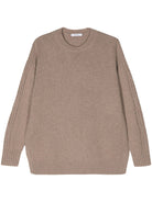 ALMOND BEIGE CASHMERE KNITTED CONSTRUCTION CREW NECK LONG SLEEVES RIBBED CUFFS AND HEM STRAIGHT HEM