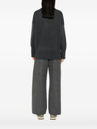 GREY CASHMERE WOOL ROUND NECK LONG SLEEVES RIBBED CUFFS