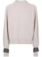 THE PRECIOUS AND ICONIC YARN OF THE BRUNELLO CUCINELLI COLLECTIONS ELEVATES THE ESSENTIAL TASTE OF THE NEW CASHMERE SWEATER. THE MODEL OFFERS RELAXED VOLUMES, WITH DROPPED SHOULDERS AND SLIGHTLY WIDE SLEEVES, FOR EXTRAORDINARY COMFORT. A PRECIOUS JEWEL EMBROIDERY COMPLETES THE GARMENT WITH A LUMINOUS AND FEMININE NOTE. THE NOBLE CASHMERE FIBRE IS CHARACTERISED BY ITS EXTREME FINENESS AND VALUABLE HEAT-INSULATING QUALITIES THAT GUARANTEE WARMTH, PROTECTION AND LIGHTNESS WHEN WORN AT THE SAME TIME. - ROUND NECK - DROPPED SHOULDER - WIDE SLEEVE - ENGLISH RIB - NICKEL-FREE DECORATION DESIGNER ID: M12723300 C9731
