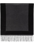 SAINT LAURENT CASSANDRE SCARF BLACK BLACKMEDIUM GREY SILK CASSANDRE LOGO JACQUARD SOLID BORDER FRINGED EDGE SILK SCARVES ACCESSORIES MEN