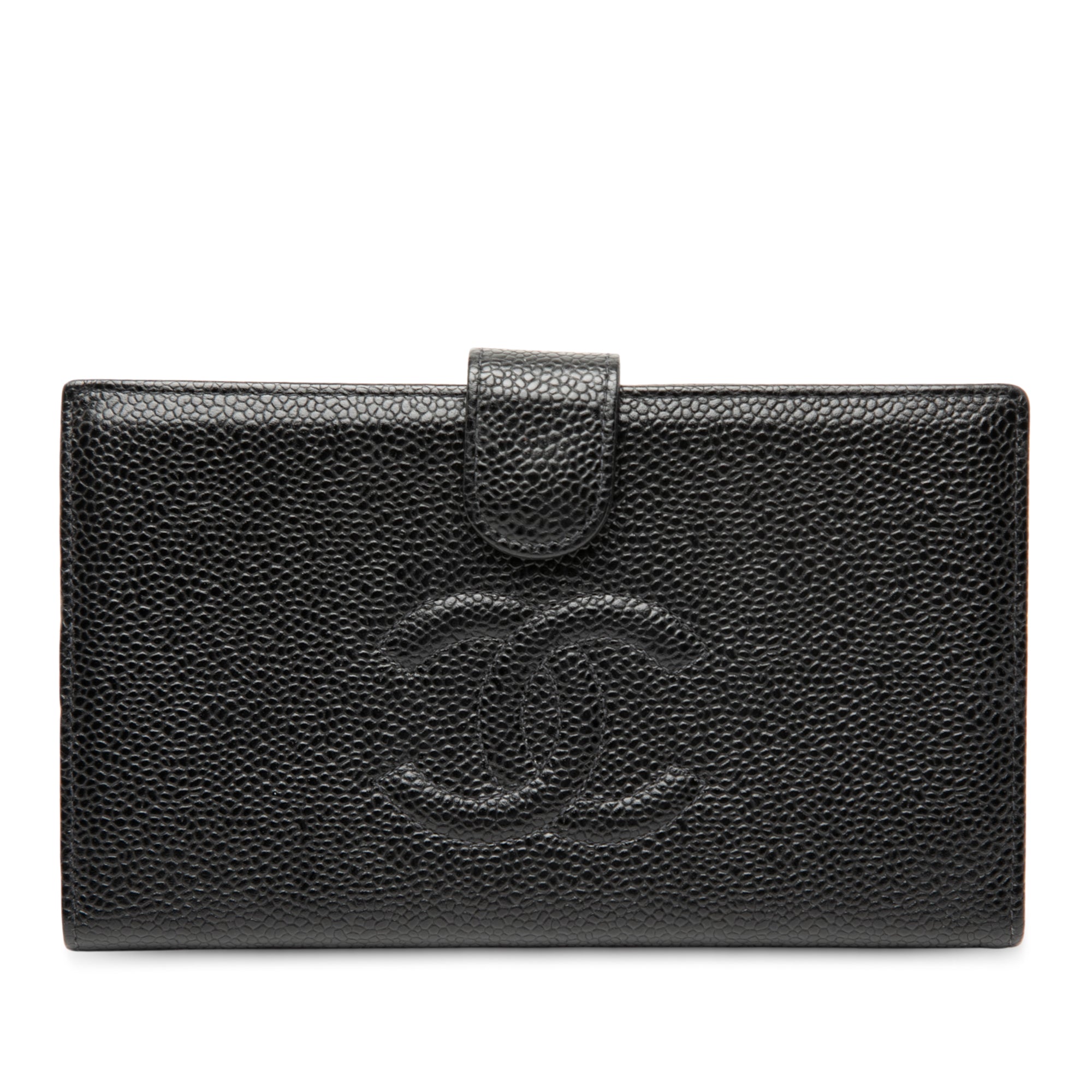 Elevate your everyday essentials with this exquisite Chanel CC Caviar Bifold French Long Wallet. Crafted from luxurious caviar leather, this sophisticated wallet features the iconic CC logo, a front strap with snap button closure, and an interior compartment with clasp lock closure for added security.